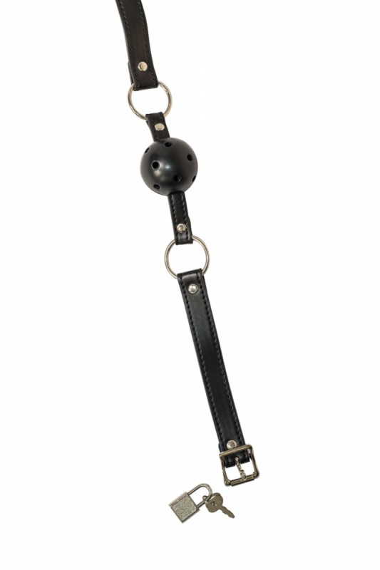 Кляп на регулируемом ремешке из экокожи с навесным замком